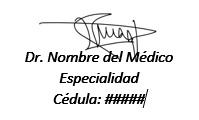 En una hoja en blanco, use un bolígrafo de tinta azul para firmar y agregar su sello con su nombre y especialidad, siguiendo la imagen de ejemplo.